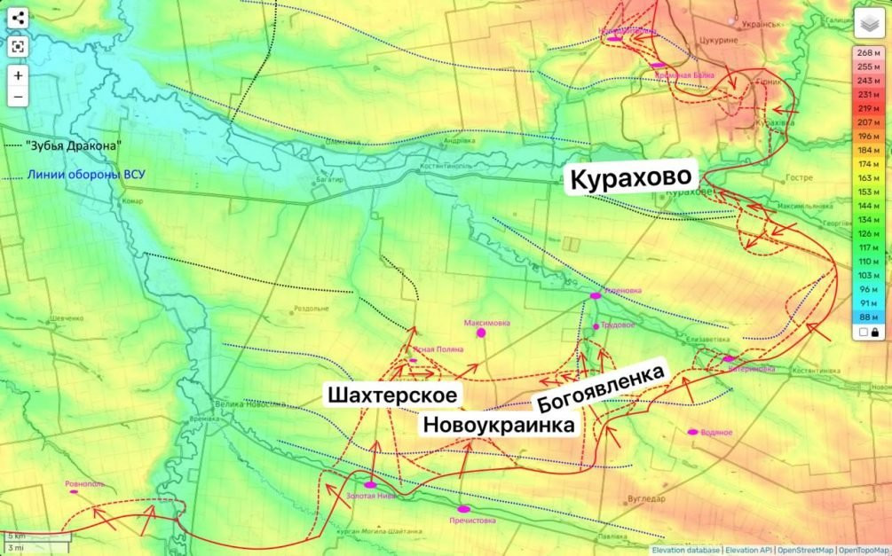 Тем временем, другие подразделения ВС РФ отрезают Курахово западнее, продвигаясь к Константинополю.