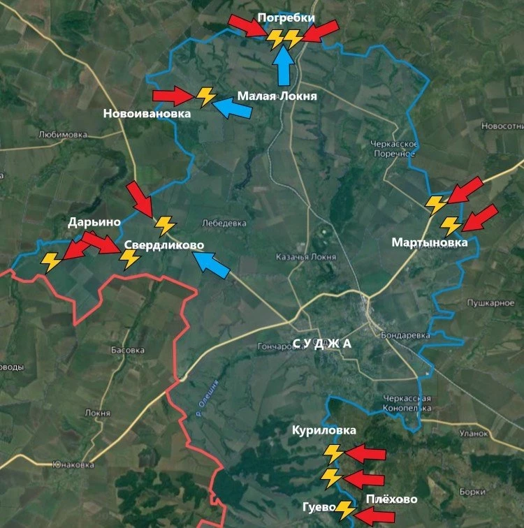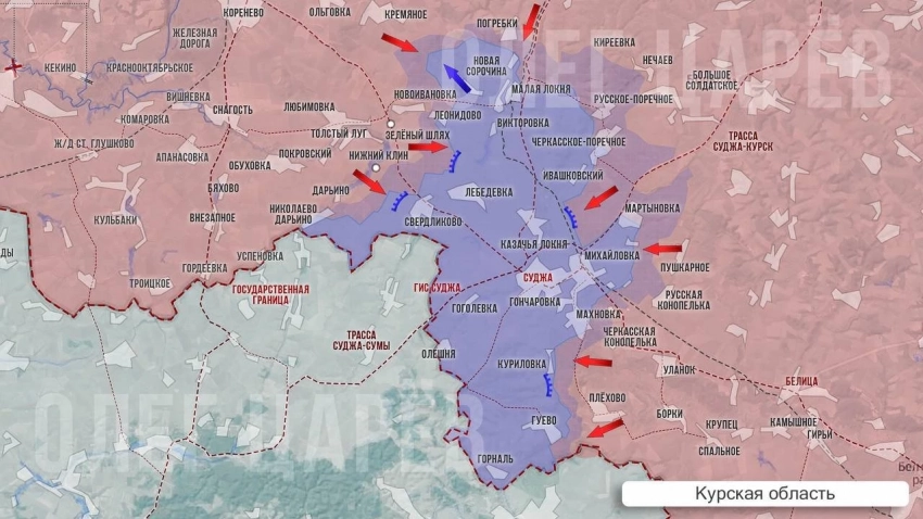 Российские войска пока не форсируют реку Псёл и начали окружение группировки ВСУ с юга через Сумскую область, стремясь занять ключевые высоты и отрезать пути снабжения украинских частей в Курской области.