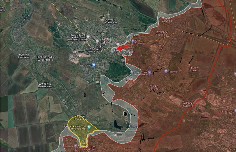 На Торецком направлении в Торецке ВС РФ имеют тактические успехи в западной части мкр. № 1, продвинулись вдоль улиц Лесная и Сорочука.