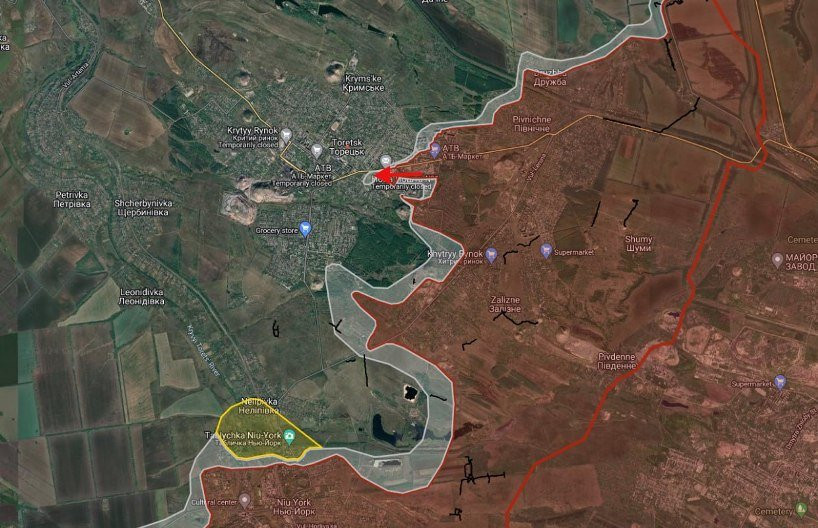 Украинск пока ещё полностью не освобожден. Остатки ВСУ удерживают позиции на терриконе шахты "Украина". Наши бойцы взяли населённый пункт в мешок, однако о полном окружении пока что говорить рано.