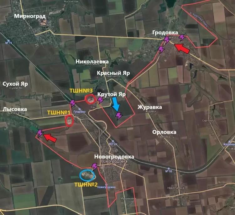 ВСУ продолжают атаковать в районе Крутого Яра. Направление движения - как на юг, в сторону Новогродовки, так и на запад - в районе террикона шахты "Новогродовская №3" (ТШН№3).