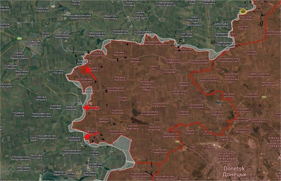 На Времевском направлении российские войска продвинулись от восточной окраины балки Грушеватая до фермы севернее Старомайорского на участке шириной до 4.57 км.