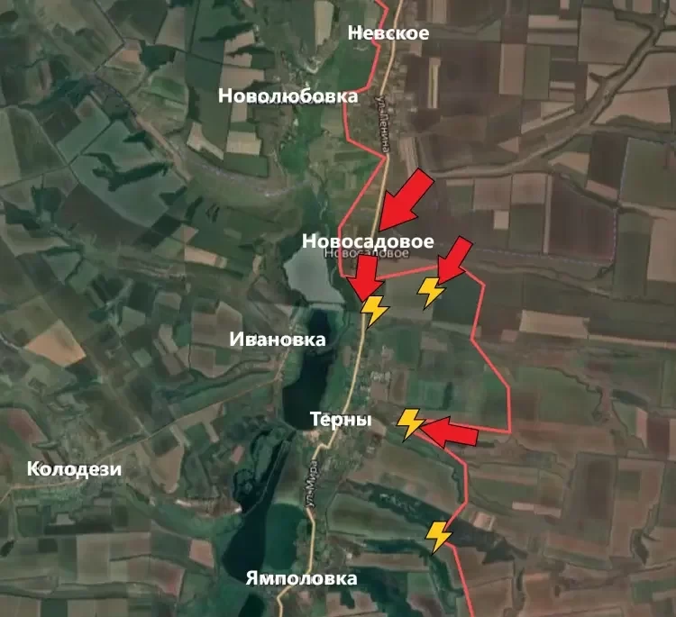 Вчера Минобороны России сообщило об освобождении Новосадового. Это существенное продвижение позволит ВС РФ подойти к печально известным Тернам с севера. Напомню, что штурмовые отряды Армии России не раз атаковали позиции ВСУ в Тернах с востока, но каждый раз эти атаки заканчивались для нас далеко не самым лучшим образом. Возможно, с севера удастся проломить оборону врага.