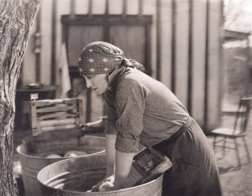 Стирка в прошлом — особенно зимой, в холодной воде — была настолько изнуряющей, что могла использоваться как наказание для провинившихся крестьян. Женщины, по несколько часов стоя в холодной воде, буквально стирали пальцы в кровь и нередко заболевали. Для отбеливания использовали растворы с высоким содержанием щёлочи и аммиака, что негативно сказывалось на здоровье. Этот труд требовал не только физической силы, но и изобретательности — простых способов для поддержания гигиены одежды тогда не существовало.