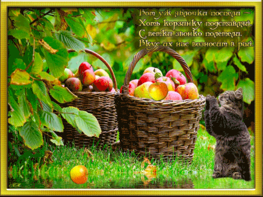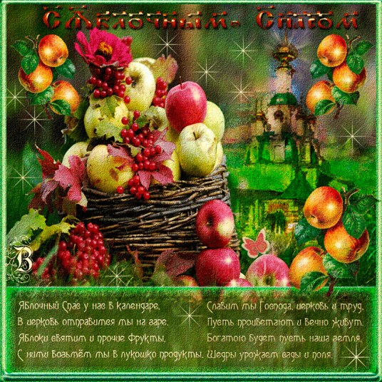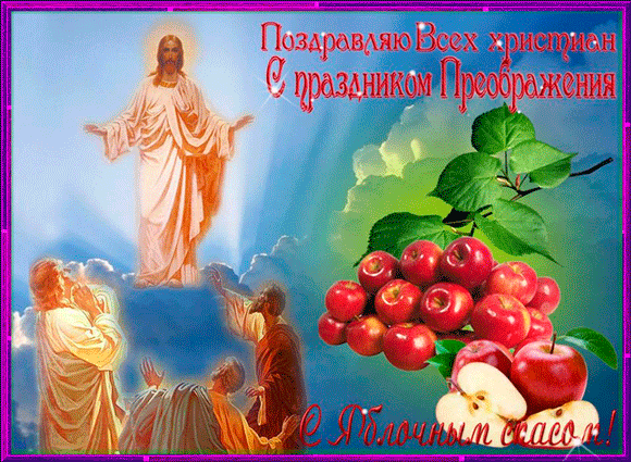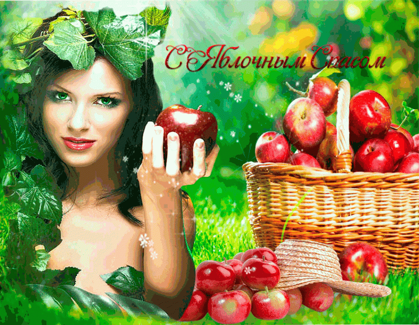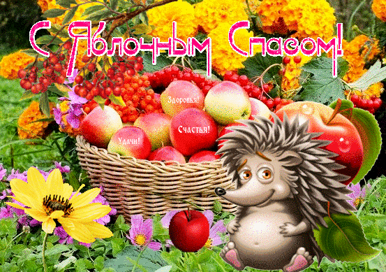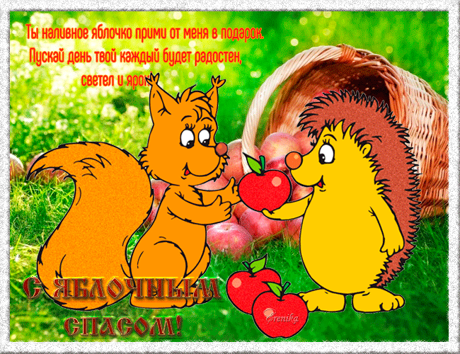 Если вы хотите отправить друзьям или родственникам картинки с Яблочным Спасом, это можно сделать с помощью поздравления с анимацией или в виде интересной гифки.